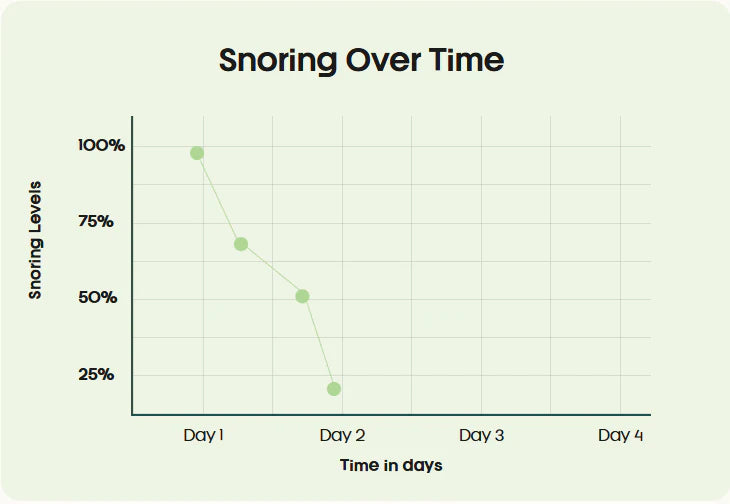 95 % Ein Großteil der Teilnehmer bemerkte eine Abnahme ihres Schnarchens. nach der ersten Nacht