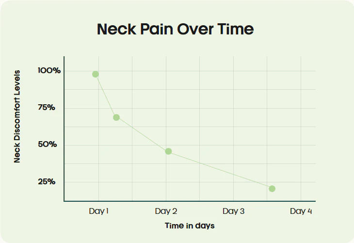 90 % Die Teilnehmer bemerkten eine Verringerung der Nackenverspannungen. nach 3 Nächten