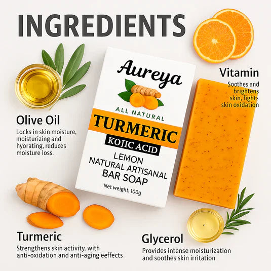 Aureya Glow convient à tous les types de peau et atténue les taches brunes, les marques d'acné et le teint terne grâce au curcuma, à l'acide kojique et au citron. ✅ Sans artifices. Sans produits chimiques agressifs. Juste une peau éclatante et uniforme, naturellement. N'attendez plus, votre peau mérite mieux. Révélez votre éclat dès aujourd'hui.