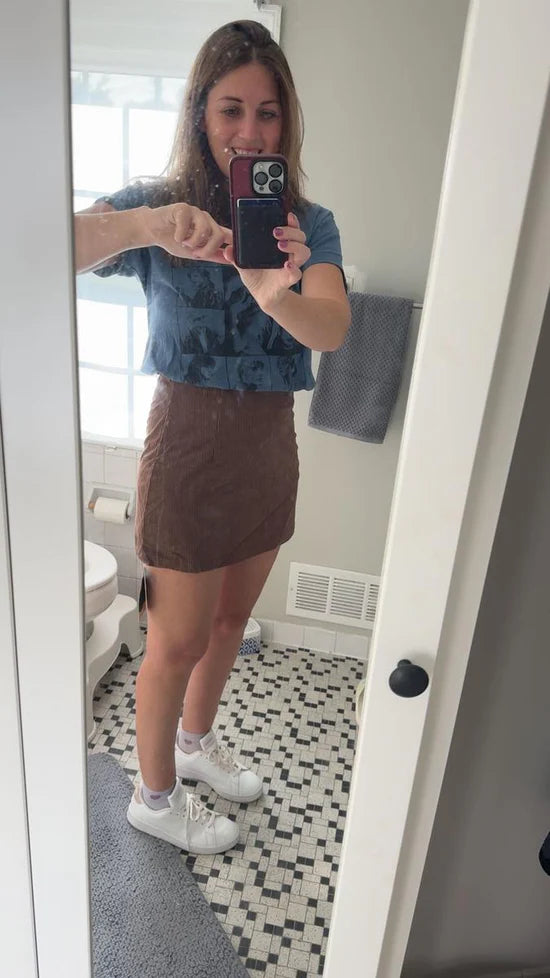 2-in-1 High Waisted Corduroy A-Line Skirt