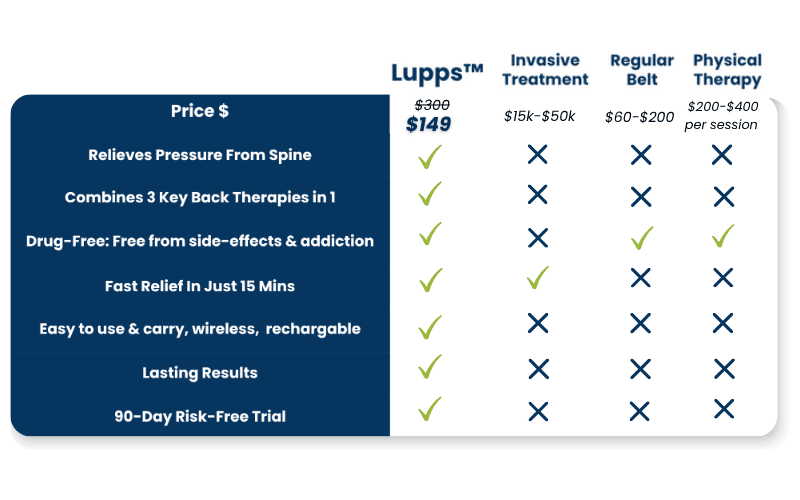 Absolutely! The Lupps Back Therapy Belt is specifically designed to relieve lower back pain, sciatica, and disc pressure - even if you've been struggling for years. Its triple-action therapy (decompression, red light, and vibration) works together to ease nerve pain, improve circulation, and support your body’s natural healing.