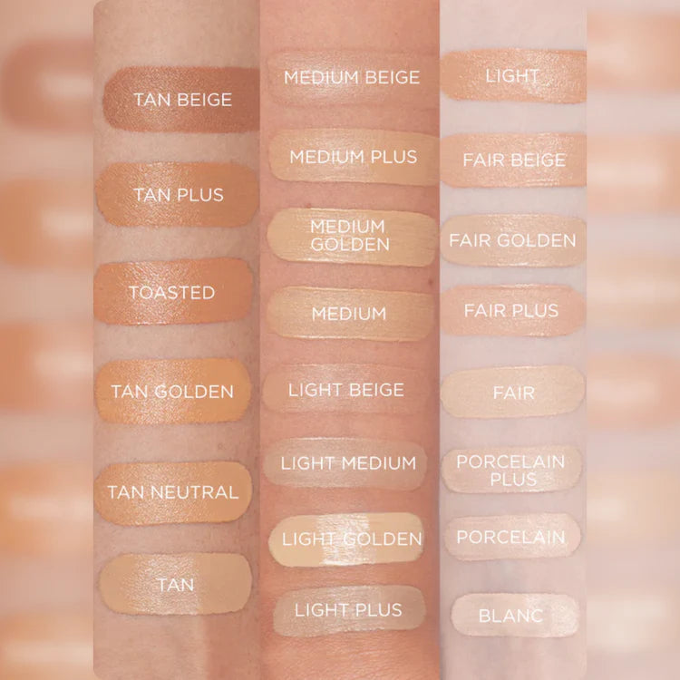 Medium buildable coverage that hides age spots, redness, and uneven tone while still looking like your natural skin. Think "your skin but better."