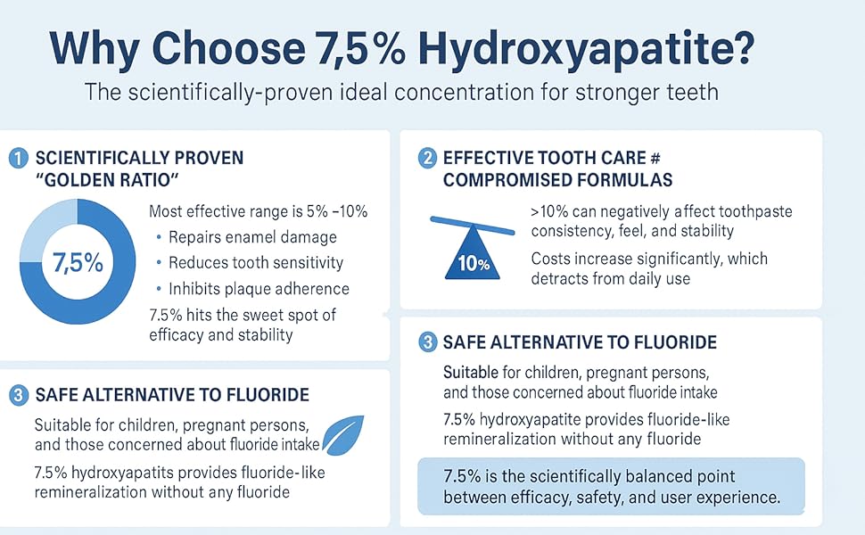 Hydroxyapatite Toothpaste 7.5% for Enamel Teeth Whitening Refreshing Flavor Fluorid