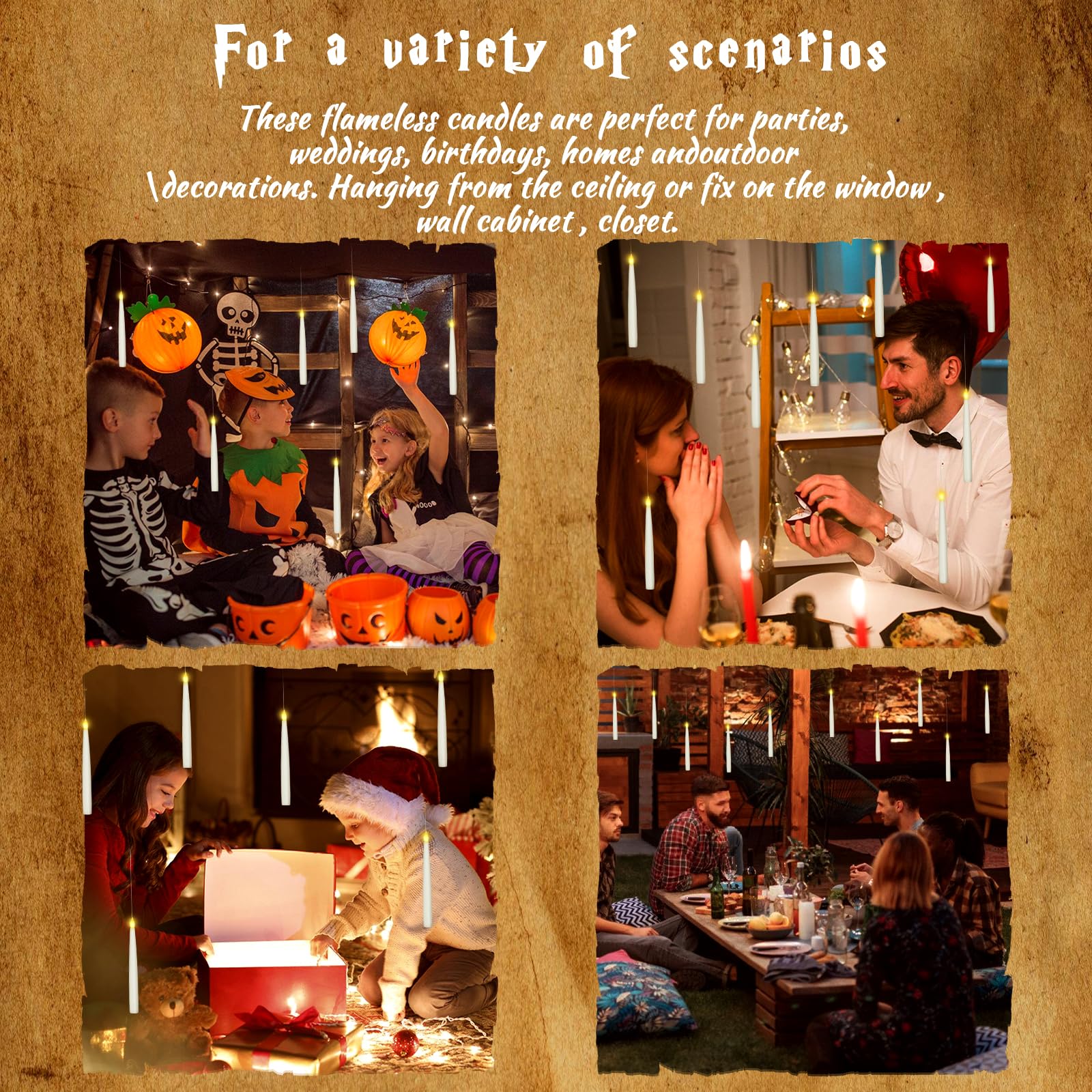 Each set includes 10, 12, or 20 LED candles, a wand remote control, and stick hooks. The candles operate with AAA batteries (not included), making setup quick and simple.