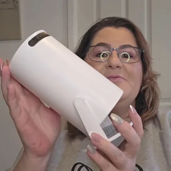 Our unique 180° rotating stand makes ceiling projection effortless. Lie back comfortably and project an enchanted forest canopy, a gentle rainstorm, or a peaceful sky above you.