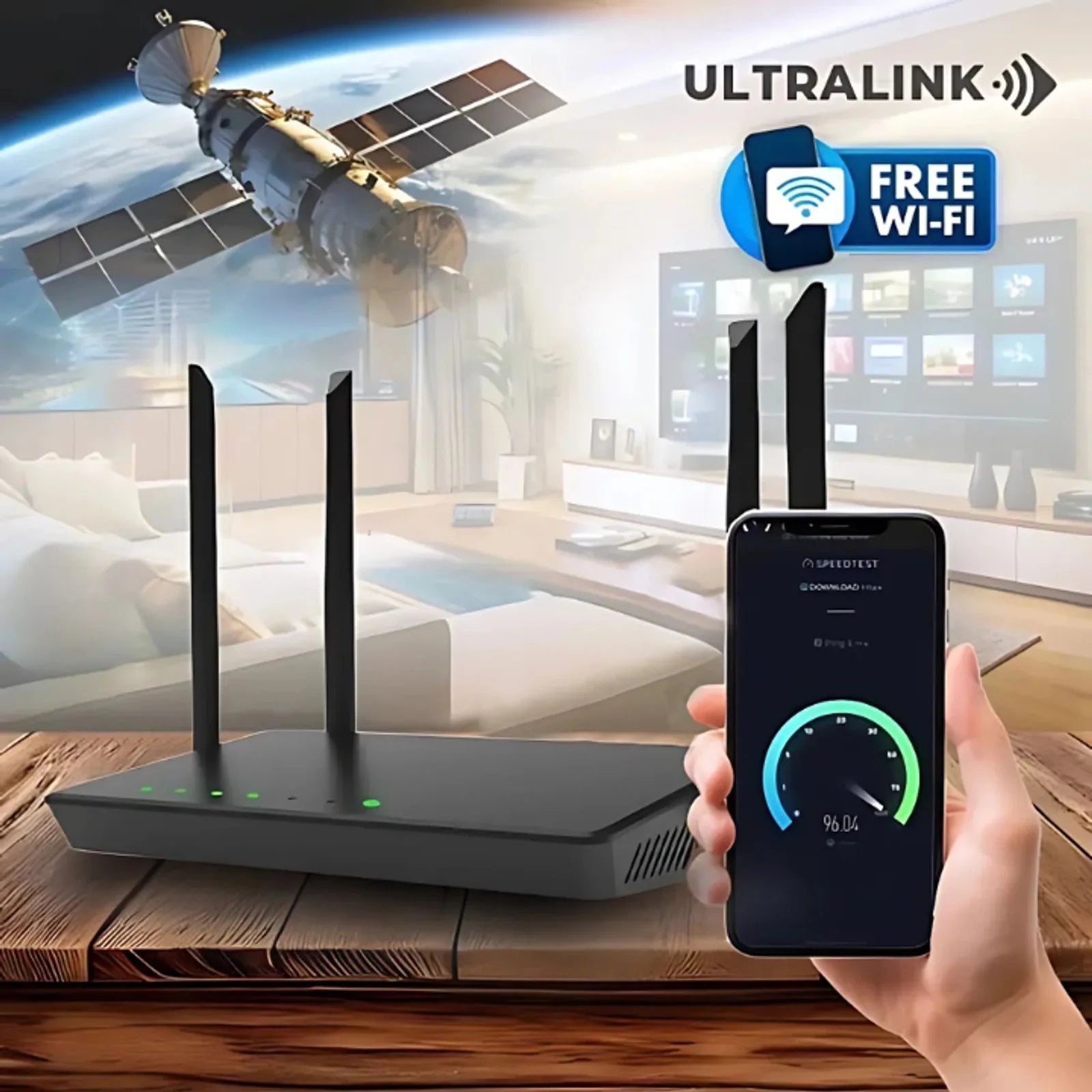 Get perfect Internet in just 60 seconds! Just turn on our UltraLink router, connect it to the nearest satellite, and you’ll get a high-speed band!
